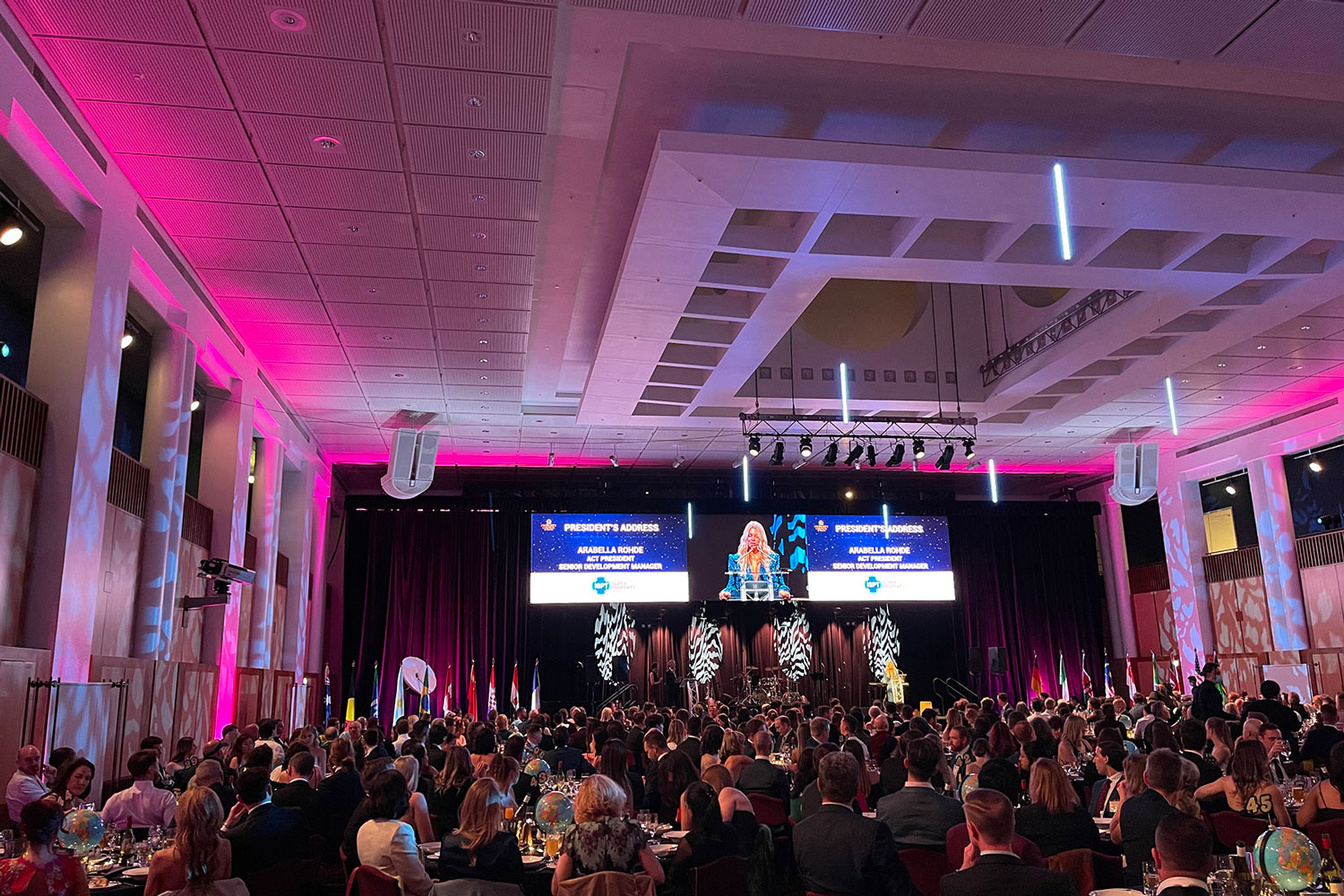 The high profile event was hosted at The Great Hall located at Australia’s Parliament House and themed as “Around The World” this year. EET provided a complete AV solution for the evening, covering all aspects of the technical production, design and management.