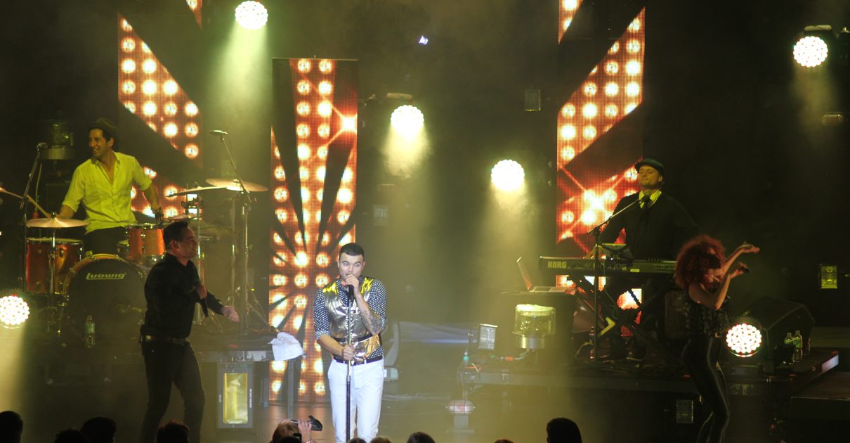 The main visuals on stage were provided from a VuePix P6 SMD LED Screen, 28 panels (7 x 4) configured ground stacked on Clifton Productions custom made rolling dolly as there was nowhere to hang upstage. The Catalyst based visuals driven through this set up was by Matt Hansen from MPH Productions. These provided colourful graphics of colour on stage which suited the mood for the American Pop Star’s infectious smashing hits – the lighting designs and operation by LD Brad Teagan