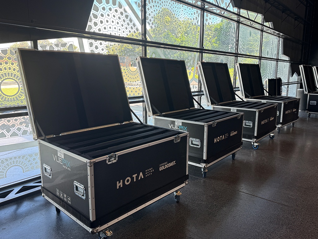 The iconic cultural hub of the Gold Coast, HOTA (Home of the Arts), has recently undertaken a significant upgrade of its visual technology for their Outdoor Stage. Earlier this year, 120 VuePix Infiled AR 3.9 outdoor LED panels were delivered to the venue, enhancing its audiovisual capabilities.