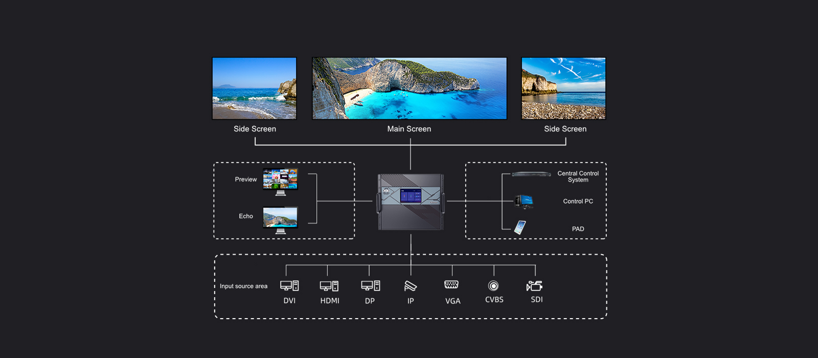 The H Series greatly simplifies LED system integration, image processing and managing multiple inputs, offering the latest image processing technology in the industry. The H series processors deliver an astonishing visual effect and ultimate picture quality for LED displays.