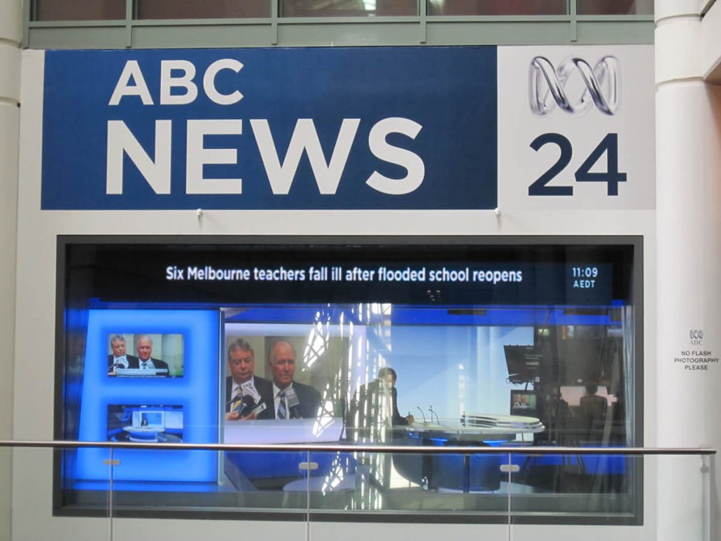 The VuePix messaging system has been installed at the ABC 24 Studios in Sydney, displaying the latest global news.