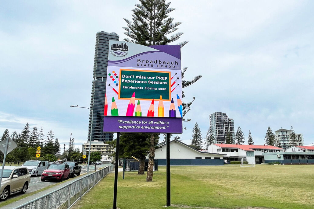 VuePix Infiled MV series outdoor panels were chosen to be the best fit for this project. The double sided 3m wide x 2m tall digital sign, with 5.9mm pixel pitch, provides a perfect digital platform to inform & connect both the school patrons as well as the community.