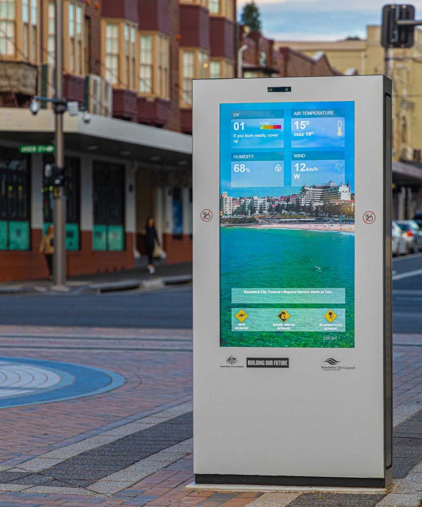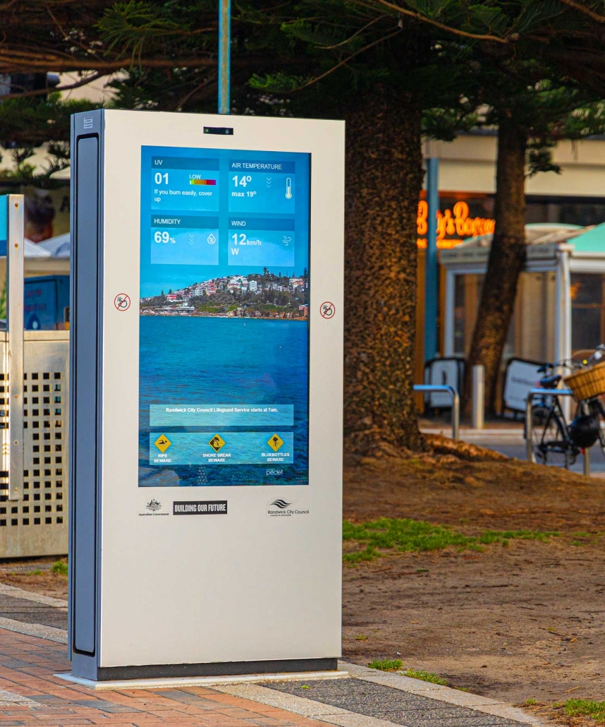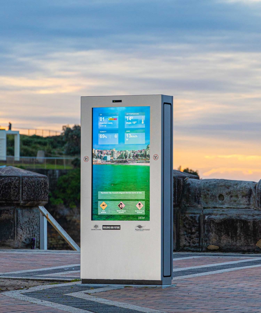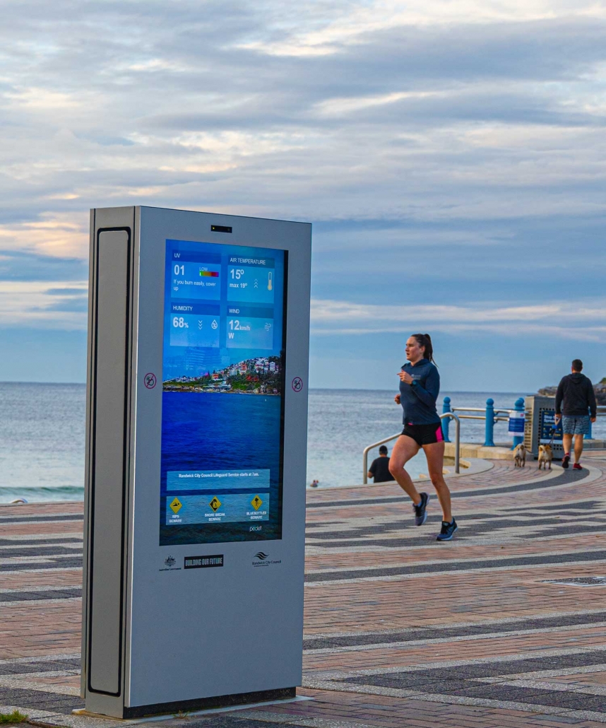 A series of LCD digital displays have been deployed in Coogee beach, NSW, running both advertising as well as infographics for the residents and tourists.