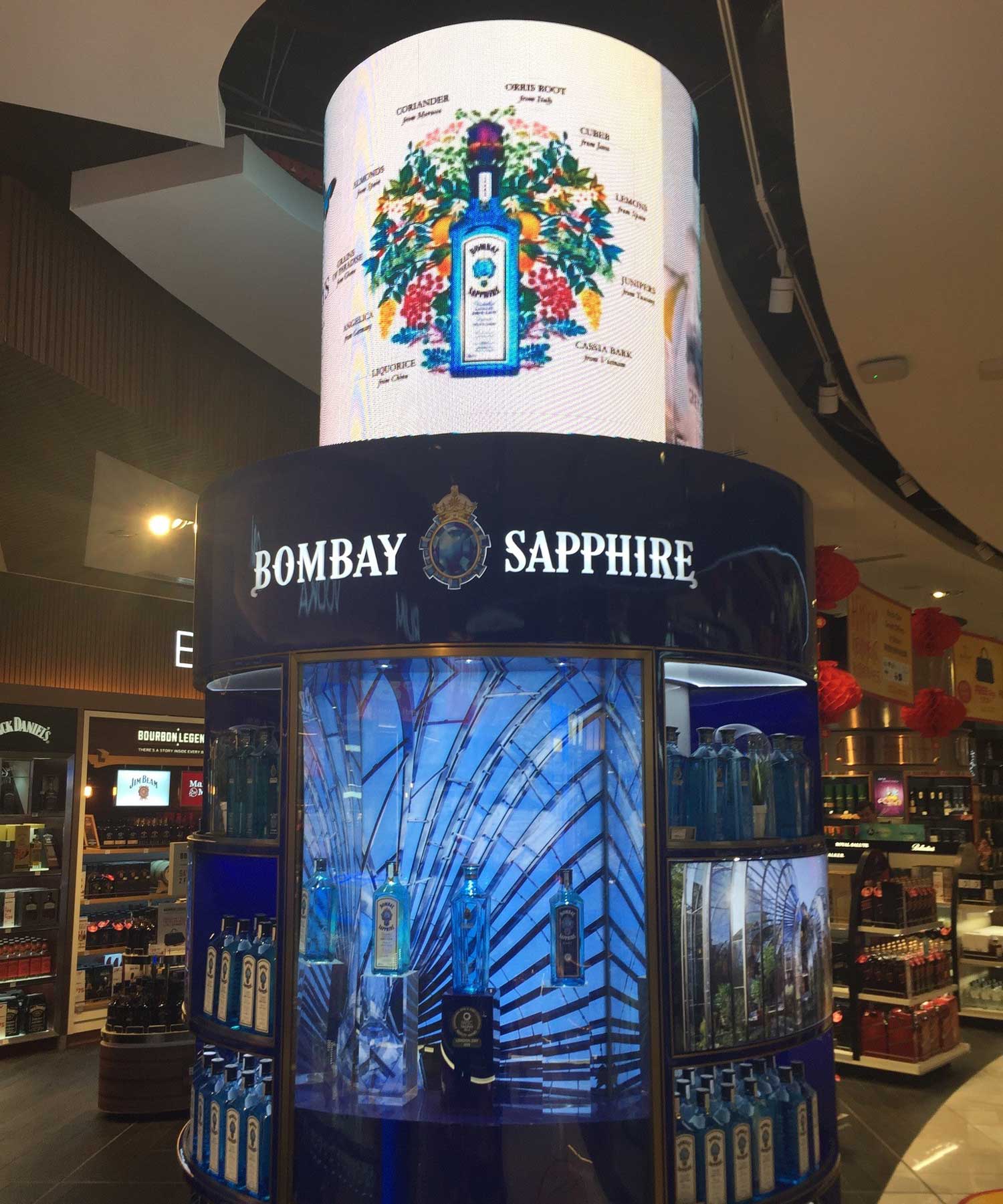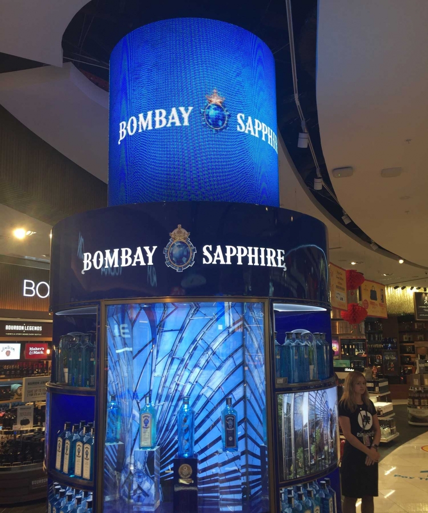 VuePix Infiled SF series flexible panels have been installed around the columns at the Duty Free store at Auckland Airport to advertise their brands and products.