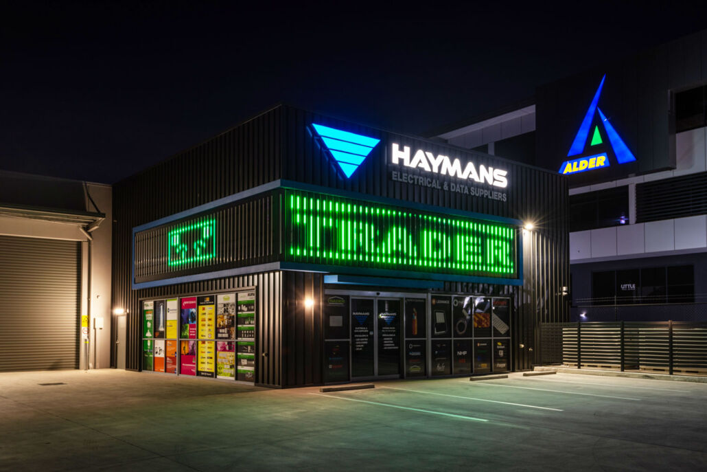 Haymans Electrical Store in Oxenford (QLD) has adopted the latest VuePix Infiled technology – VueStrip, making their store stand out within the commercial district. An exciting new Digital Media Façade provides a perfect platform to advertise their business to the passing traffic on the busy M1.