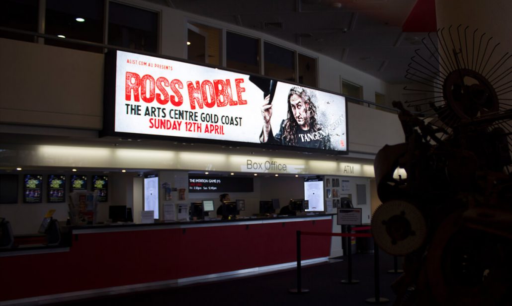 HOTA Gold Coast has embraced VuePix technology with the installation of new roadside billboard in front of the entertainment complex as well as at the Box Office area, both used for promoting upcoming shows and events hosted in the centre.
