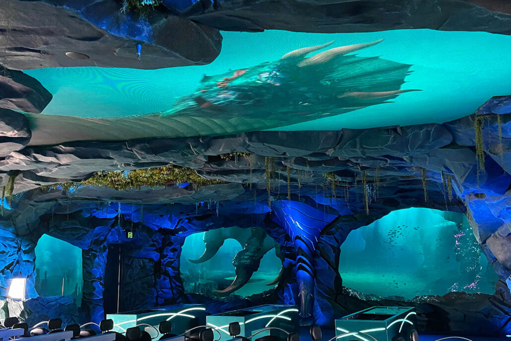 There are 8 VuePix Infiled MV series screens installed in the location, all of them of 2.9mm pixel pitch, totalling in over 12.3 million pixels. All of the displays are an irregular shape, with the largest one (11x3m) installed overhead in the main area of the rollercoaster load zone.