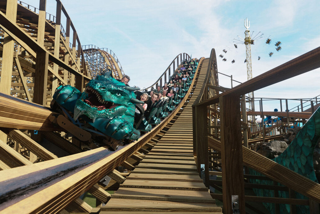 Rising from depths of The New Atlantis are three new unique rides – the mighty LEVIATHAN, World’s most iconic wooden rollercoaster, the magical TRIDENT – Sea World’s new tallest landmark, and the VORTEX – high-speed thrilling swinging attraction.