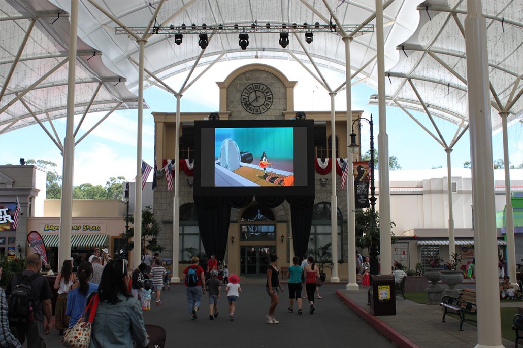 The Warner Bros. Movie World on the Gold Coast benefits from a large VuePix LED video screen, located at the ‘Main Street’ in the heart of the entertainment park.