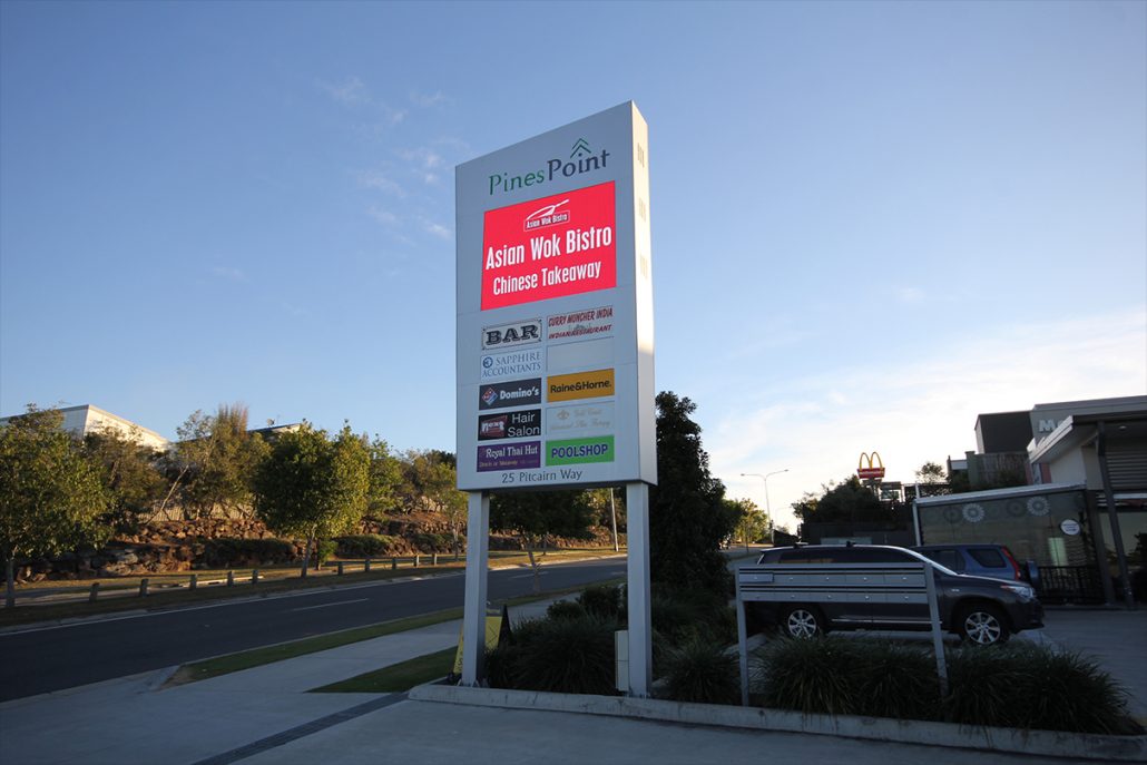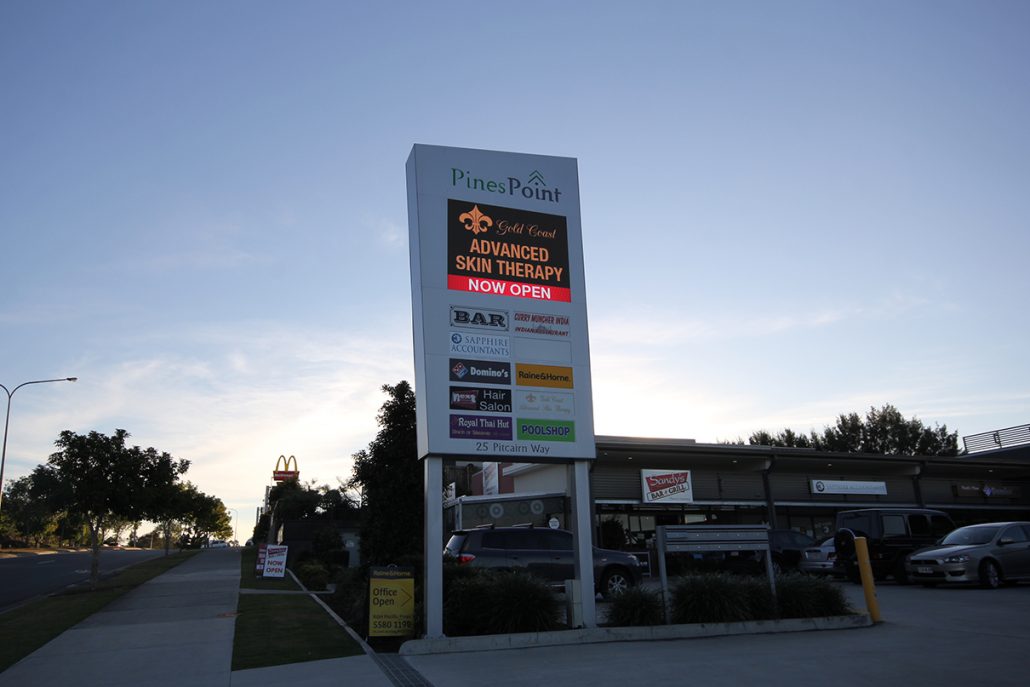 The VuePix digital billboard is installed outside the Pines Point retail complex to advertise businesses and services located in the centre.