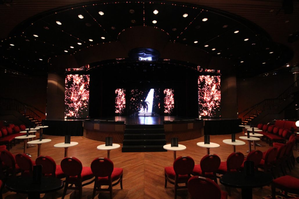 Theatre aboard the P&O Cruise liner Pacific Eden is equipped with VuePix LED Screens to entertain guests during their holiday cruise.