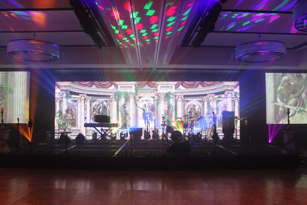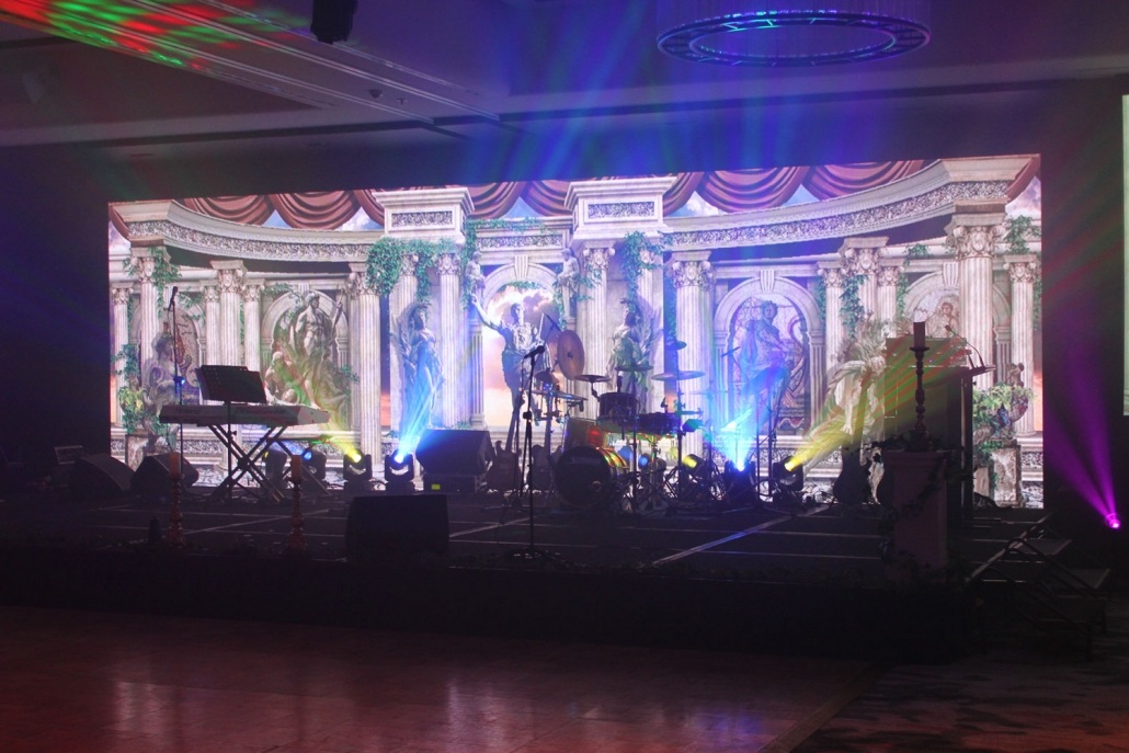 Elite Event Technology once again provided a complete audiovisual production for the Property Council ACT Awards gala, held at Hotel Realm in Canberra. This year’s award night was held with a Roman Empire theme and the whole venue was styled to suit the occasion. The EET team chose the VuePix Infiled ER4 LED screen as a major centerpiece, positioned in the middle of the main stage and setup as a 4k wide x 2k high super widescreen.