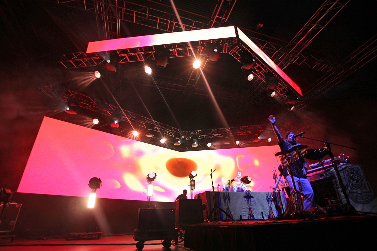 The content for the screens was custom built by Melbourne based artist Pat Fox, who worked with Tash from the concept stages to the final product. “I am running the full visual package from Resolume and a couple of Midi controllers, triggering all of it live, as well as doing lots of internal processing and live effects on the go, just to mess with it and make it fun and cool”, says Sam.