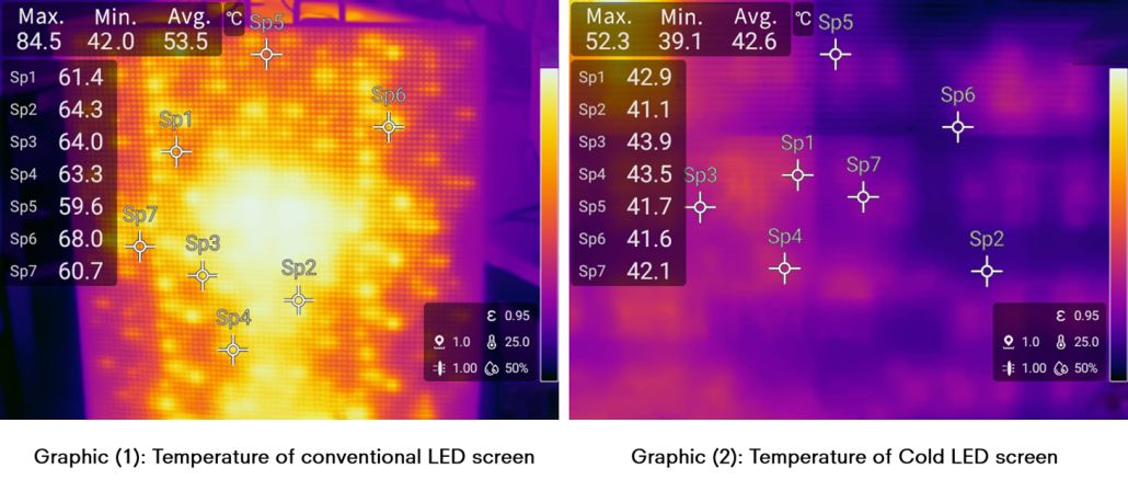 in power consumption by 30%, and a significant reduction in screen temperature, compared to conventional products, all while maintaining an equivalent level of brightness.